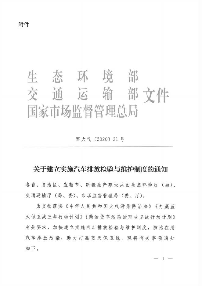 生态环境部等三部门《关于建立实施汽车排放检验与维护制度的通知》(环大气〔2020〕31号).pdf