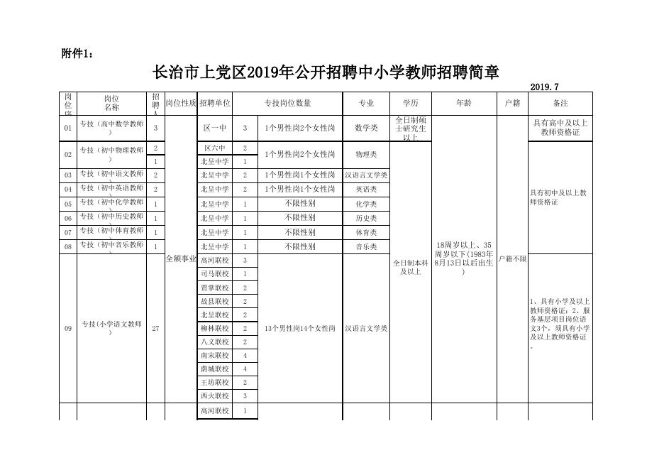 1、长治市上党区2019年公开招聘中小学教师招聘简章.xls