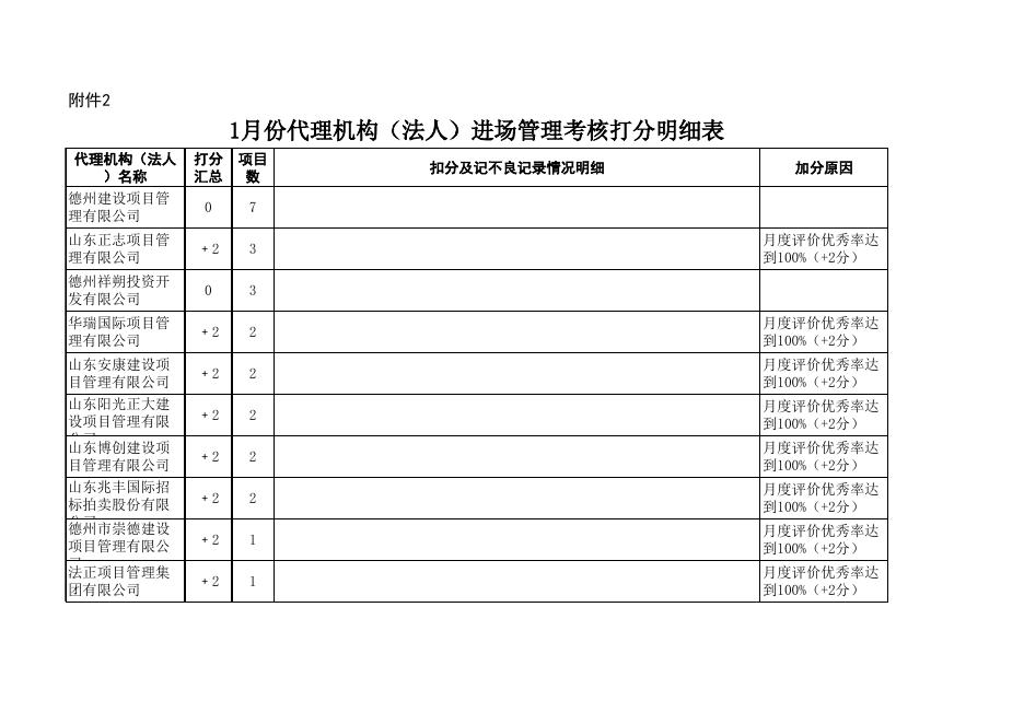 1月份代理机构(法人)进场管理考核打分明细表.xls