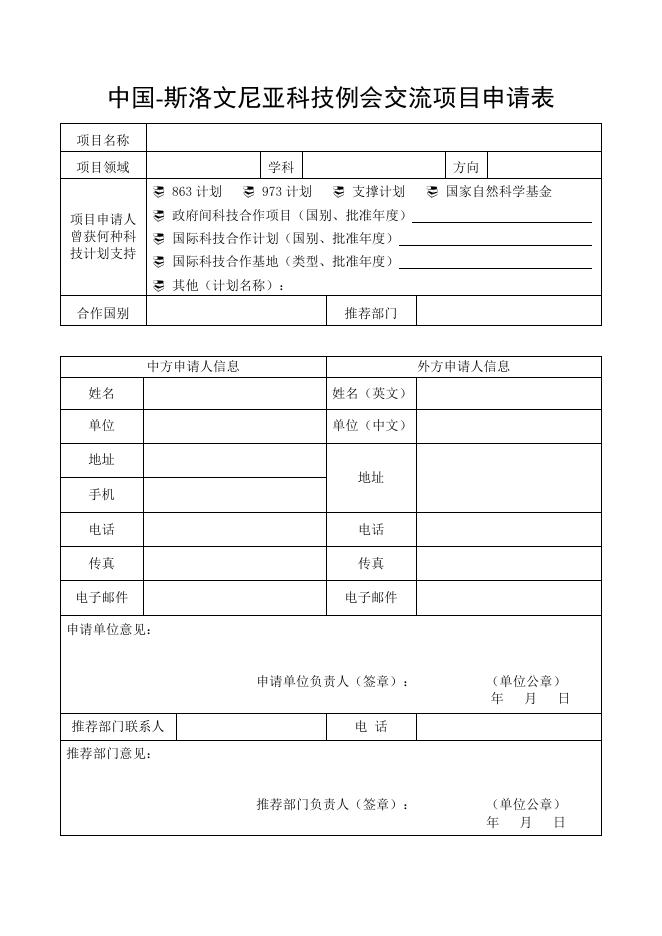 附件1:中国-斯洛文尼亚科技例会交流项目申请表.doc