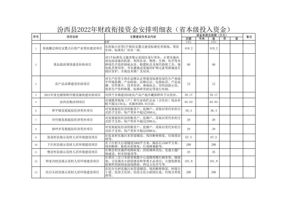 汾西县2022年财政衔接资金安排明细表(省本级投入资金).xlsx