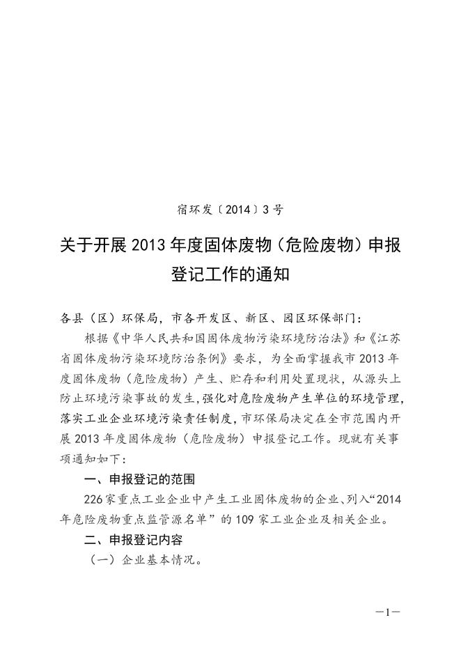 关于开展2013年度固体废物(危险废物)申报登记工作的通知.doc