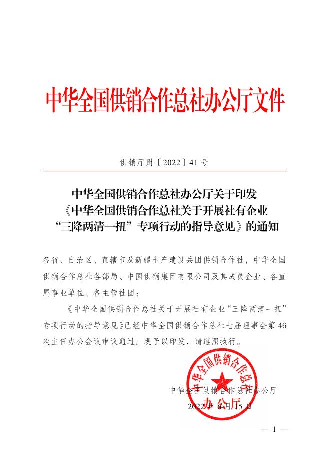 《中华全国供销合作总社办公厅关于印发中华全国供销合作总社关于开展社有企业“三降两清一扭”专项行动的指导意见的通知》(供销厅财〔2022〕41号).pdf