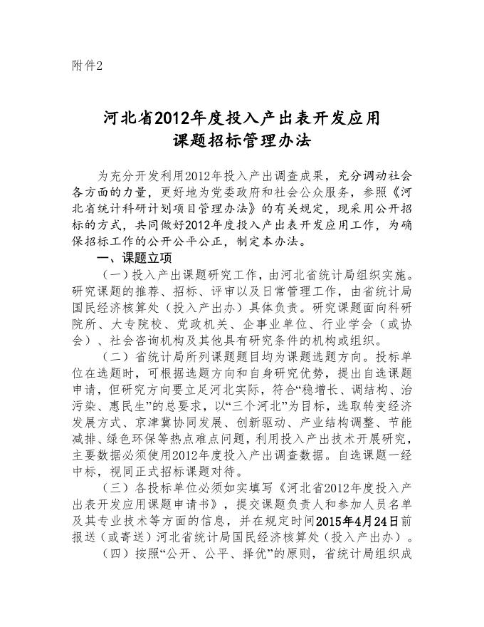 2.河北省2012年度投入产出表开发应用课题招标管理办法.doc