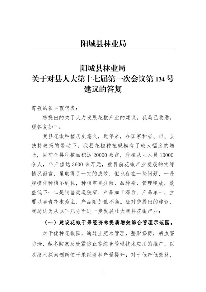 阳城县林业局关于对县人大第十七届第一次会议第134号建议的答复.pdf