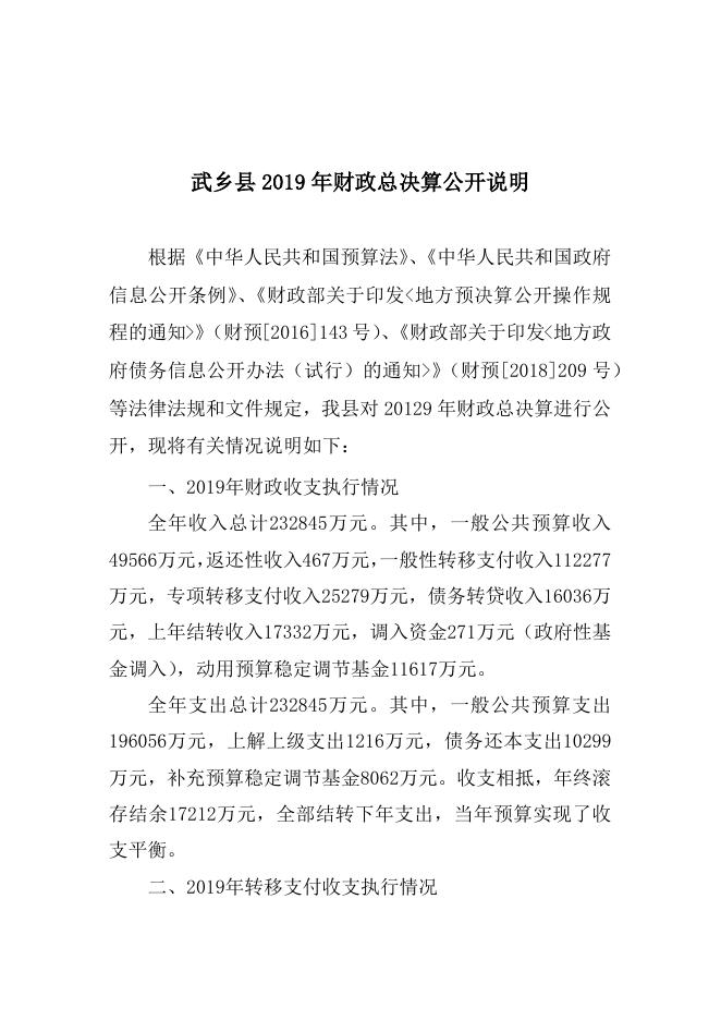 关于武乡县2019年财政决算和2020年1-7月份预算执行情况的报告.docx