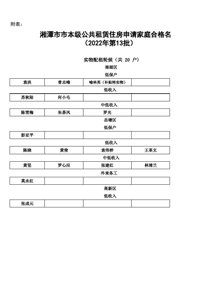 湘潭市市本级公共租赁住房申请家庭合格名单(2022年第13批).xlsx