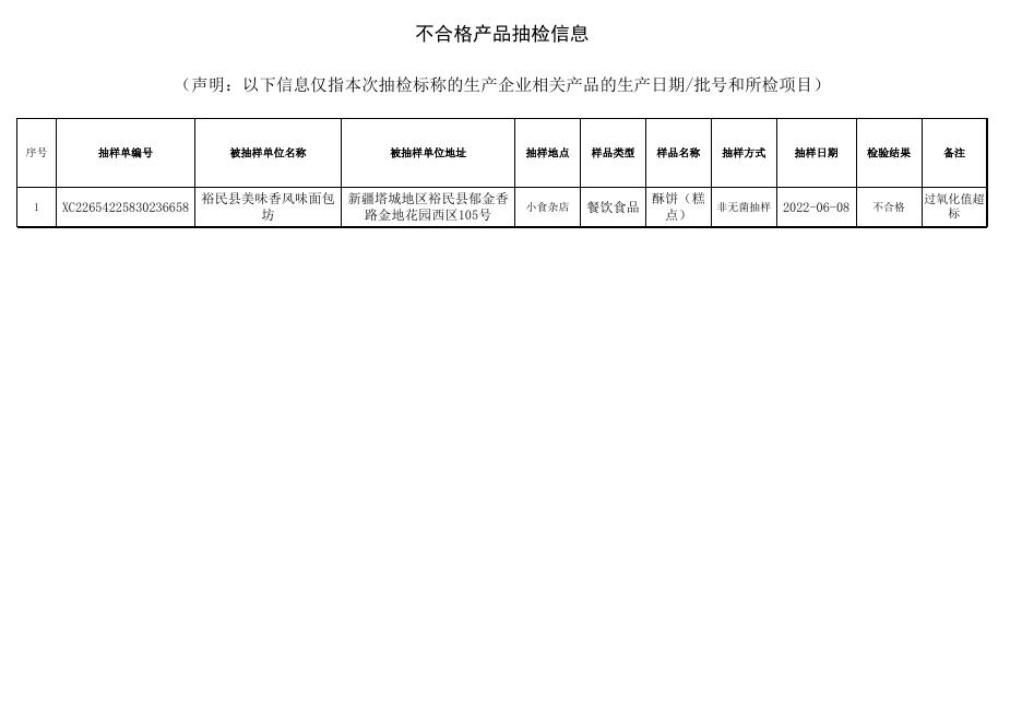 裕民县2022年6月三小食品抽检不合格信息统计表.xls