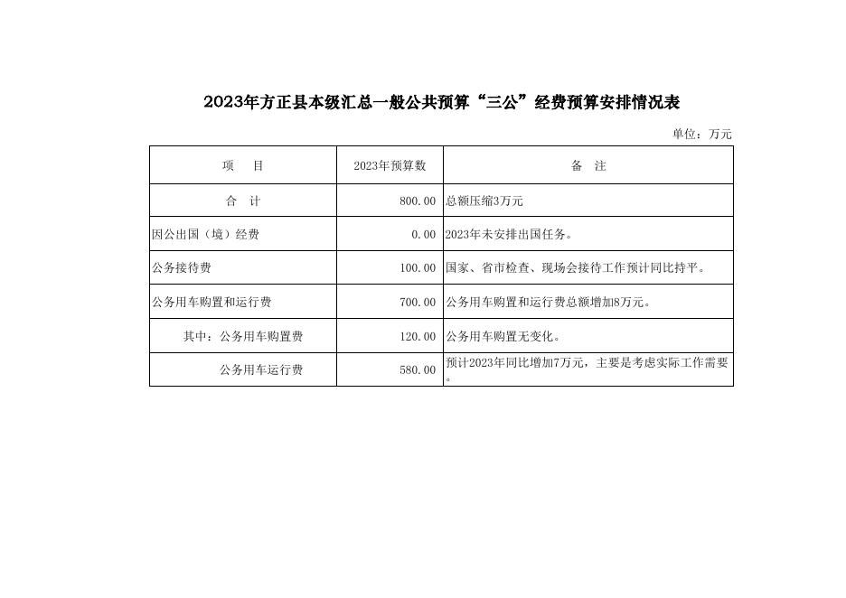 2023年方正县本级汇总一般公共预算“三公”经费预算安排情况表(附件8—1).pdf