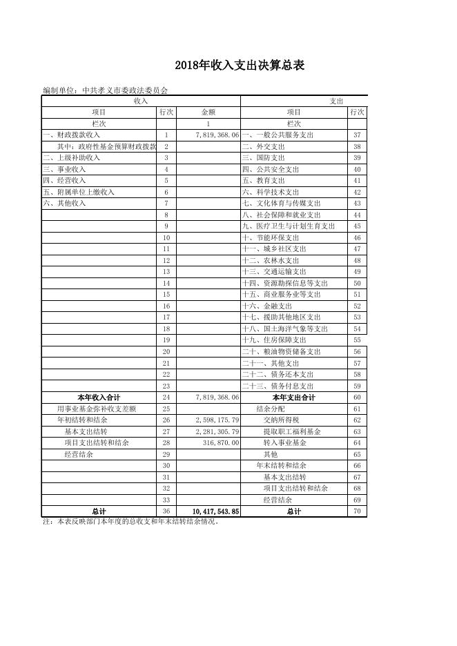 中共孝义市委政法委员会2018年部门决算公开表.xls