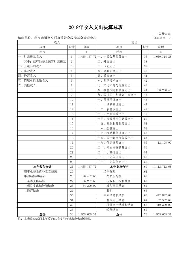 孝义市道路交通事故社会救助基金管理中心2018年部门决算公开表.xls