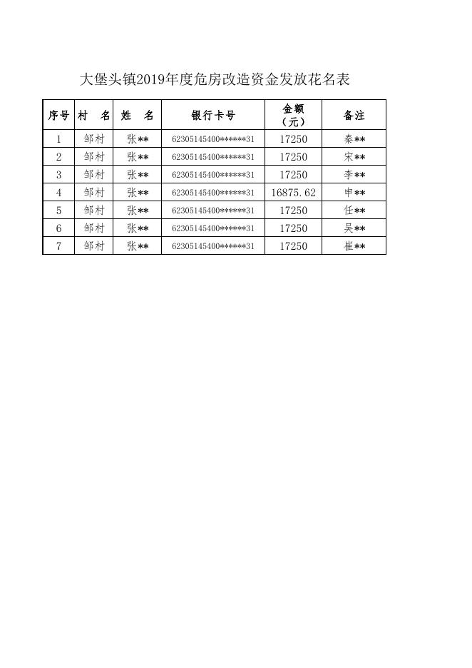 大堡头镇邹村2019年度危房改造资金发放花名表.pdf