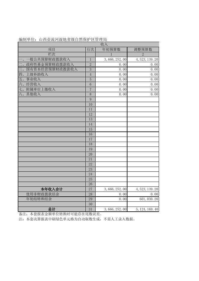 山西壶流河湿地省级自然保护区管理局2020年部门决算公开表.XLS.xls