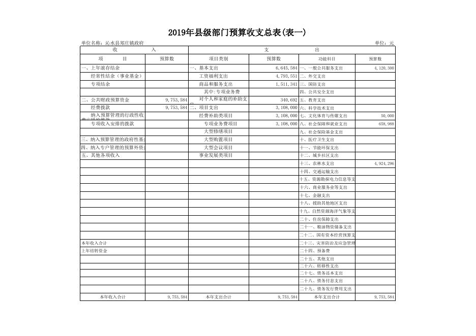 郑庄镇人民政府2019年部门预算公开表.xls