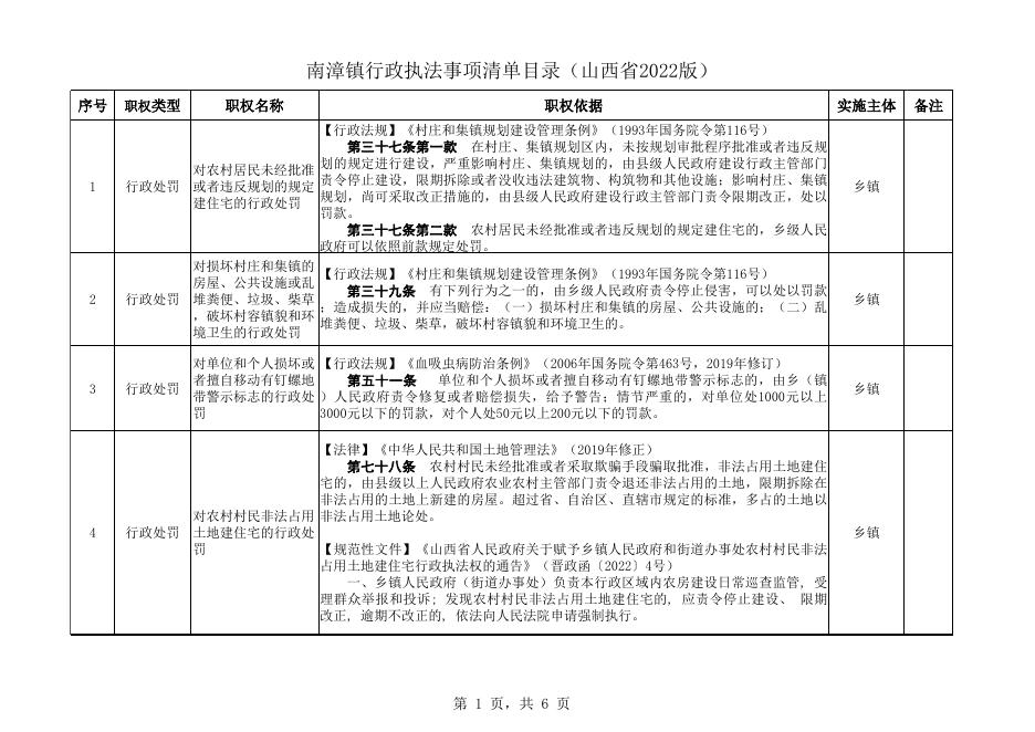 南漳镇行政执法事项清单目录(山西省2022版).xls