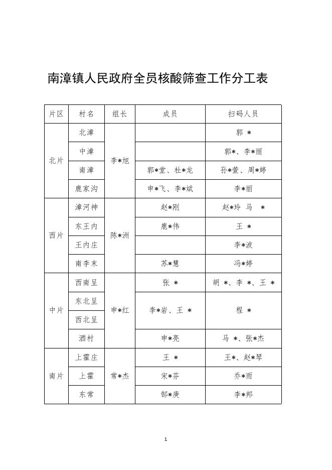 南漳镇人民政府全员核酸筛查工作分工表.doc