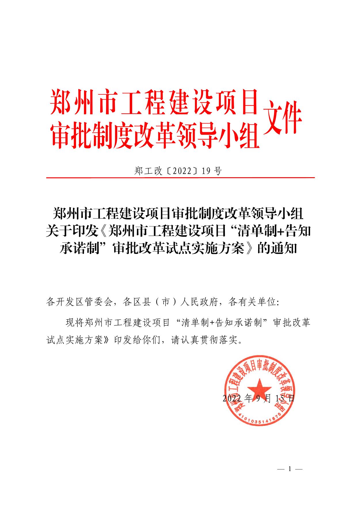 19 《关于印发郑州市工程建设项目“清单制+告知承诺制”审批改革试点实施方案的通知》.pdf