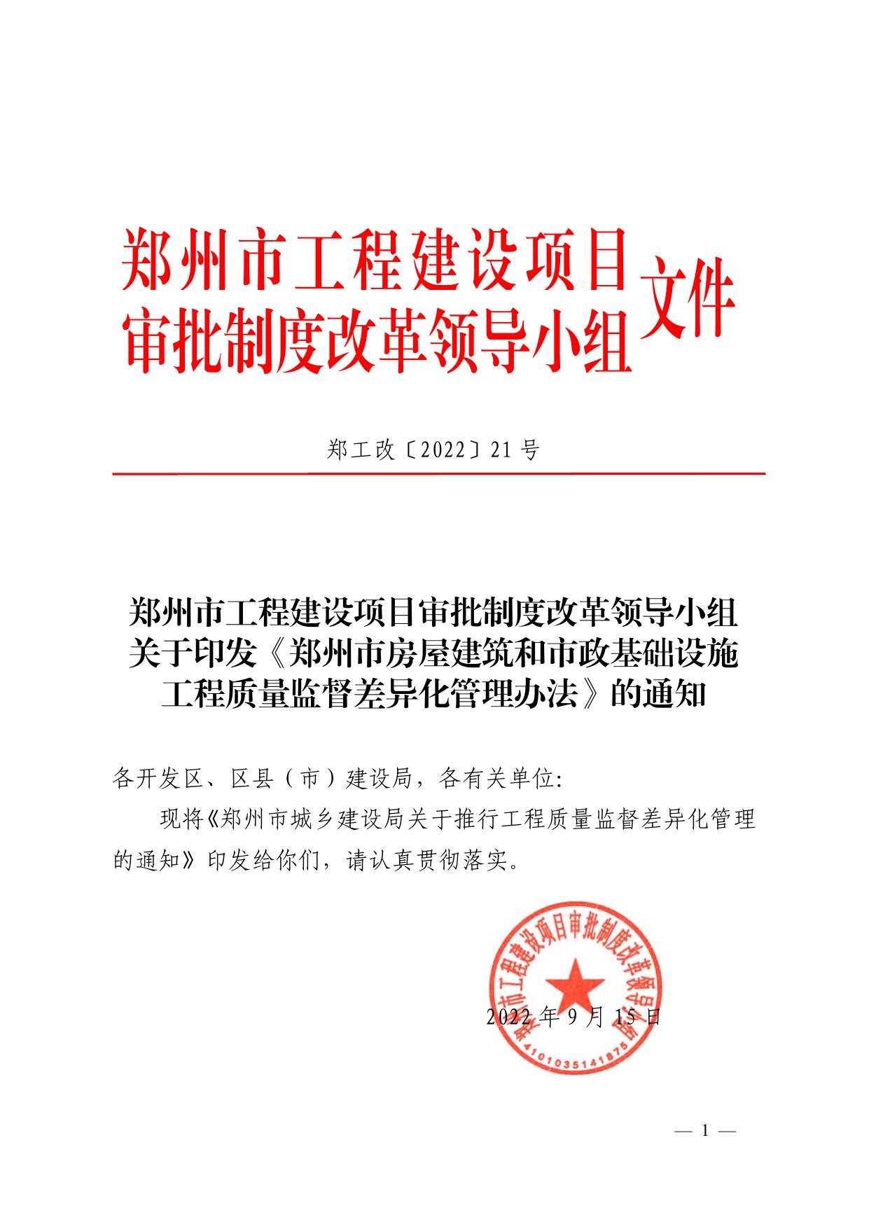 关于征求《郑州市城乡建设局关于推行工程质量监督差异化管理的通知(征求意见稿)》__意见建议的通知.pdf