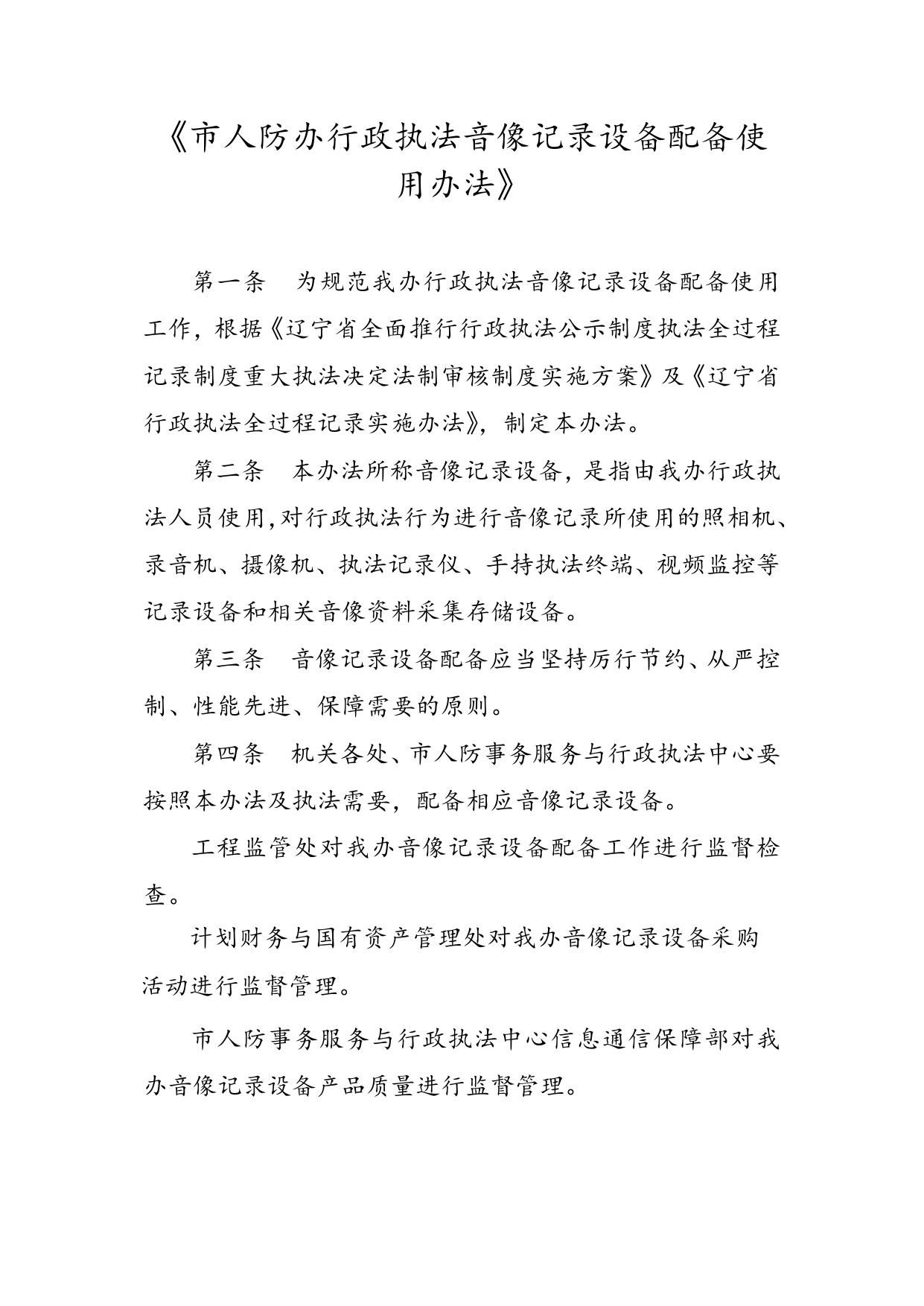 《市人防办行政执法音像记录设备配备使用办法》.docx