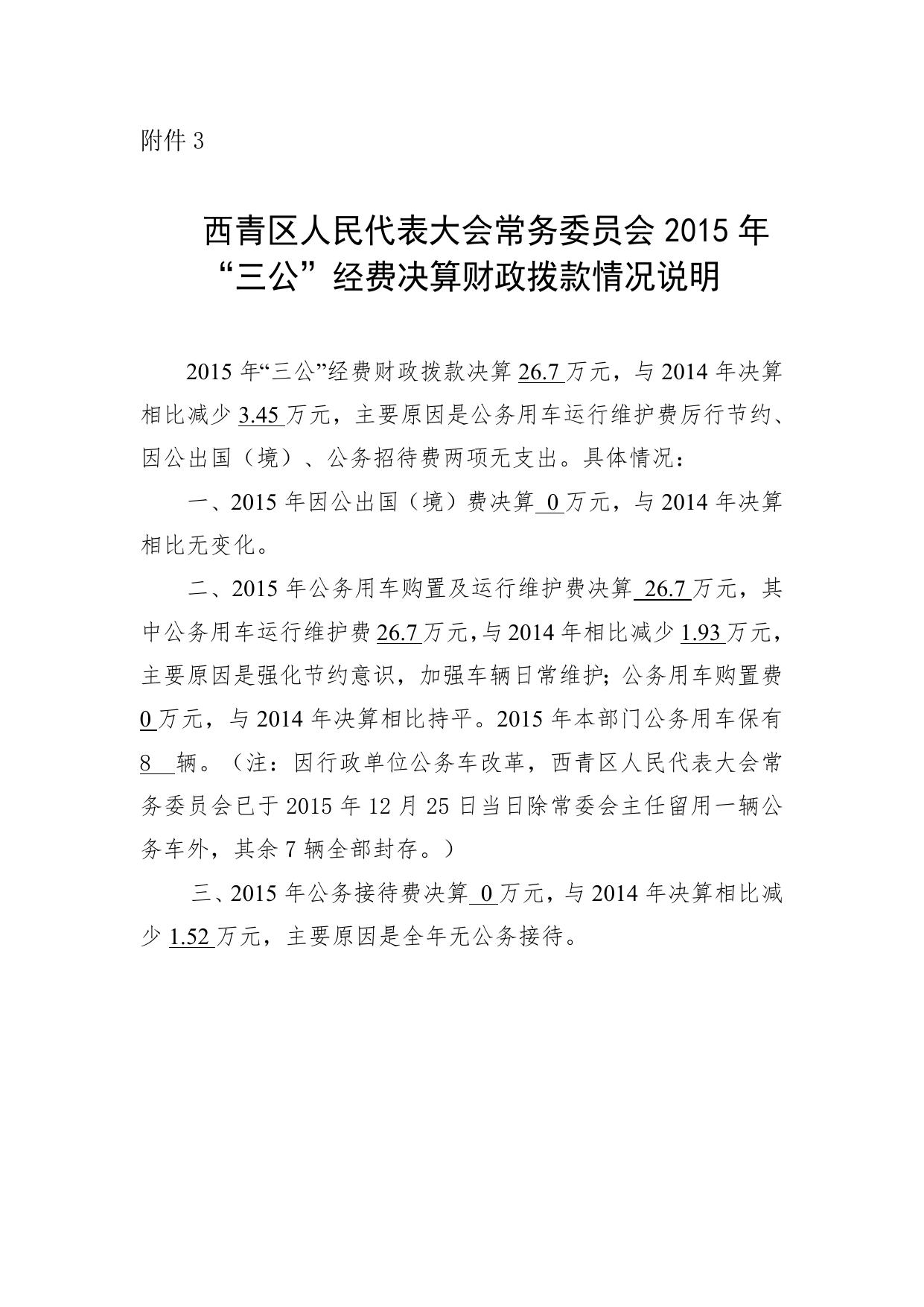 附件3:西青区人民代表大会常务委员会2015年“三公”经费决算财政拨款情况说明.doc