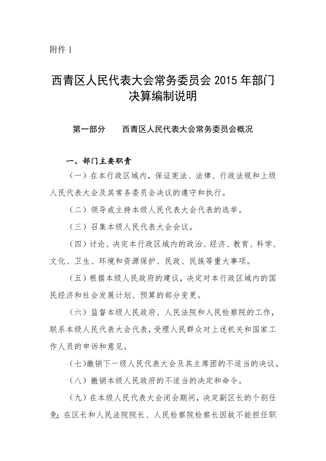 附件1:西青区人民代表大会常务委员会2015年部门决算编制说明.doc