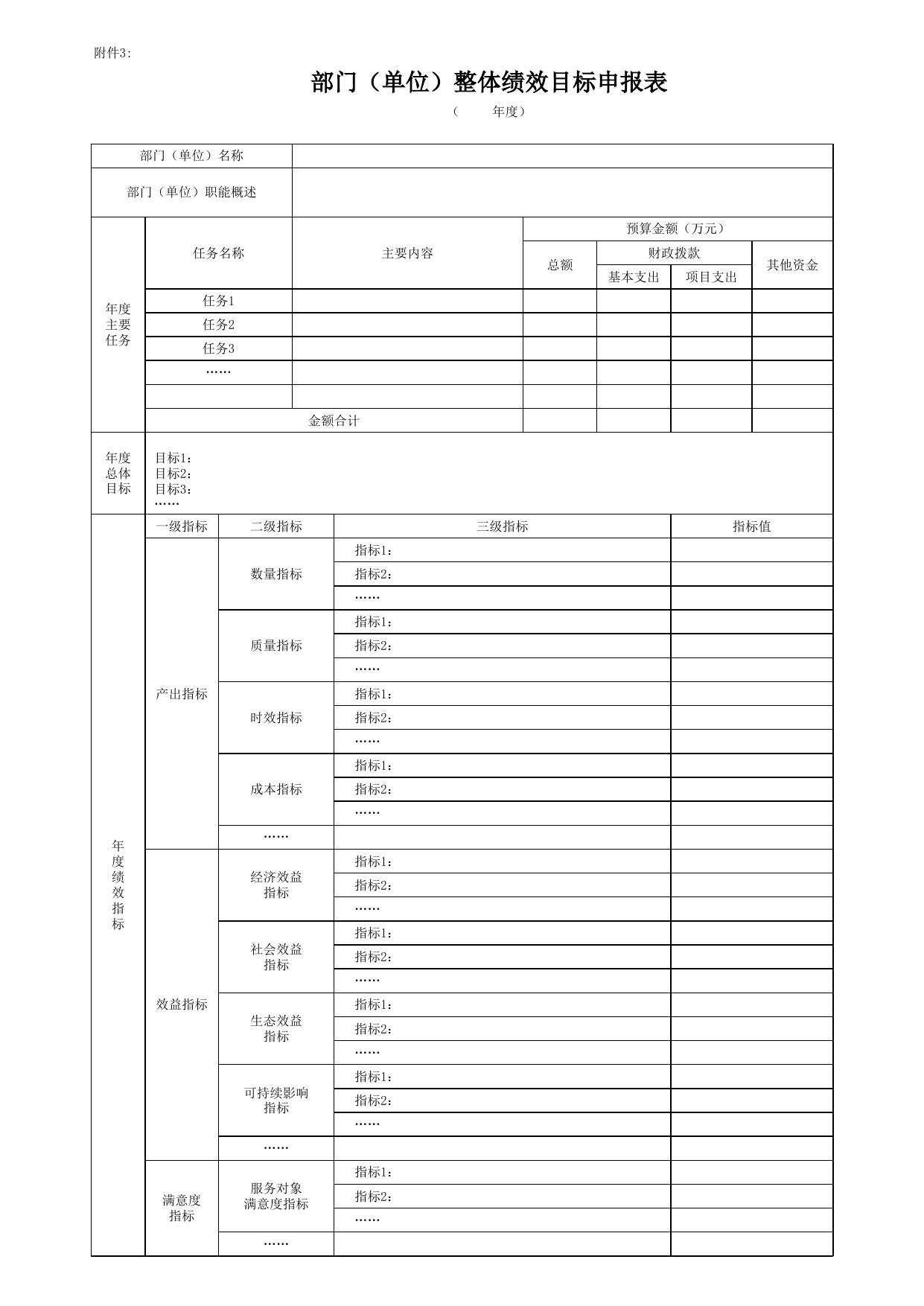 附件3:部门(单位)整体绩效目标申报表.xlsx