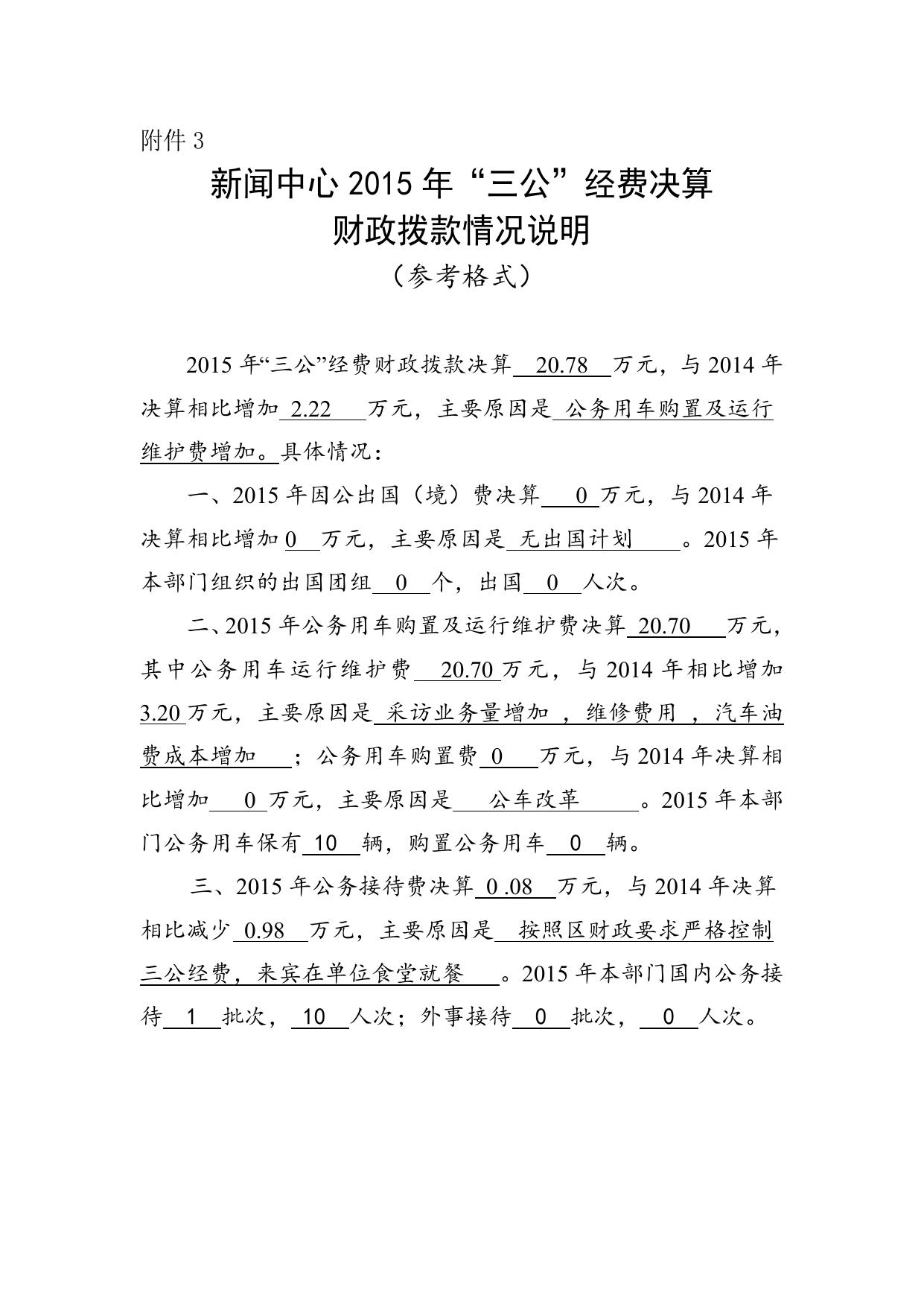 附件3:新闻中心2015年“三公”经费决算财政拨款情况说明.doc
