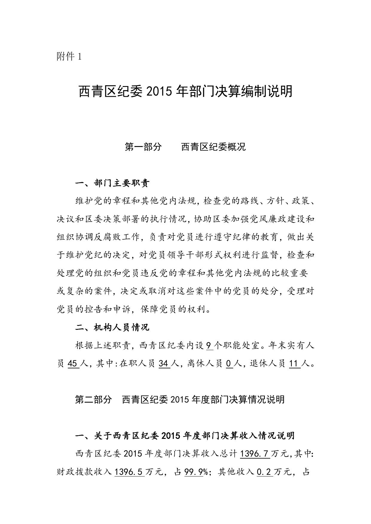 附件1:西青区纪委2015年部门决算编制说明.doc