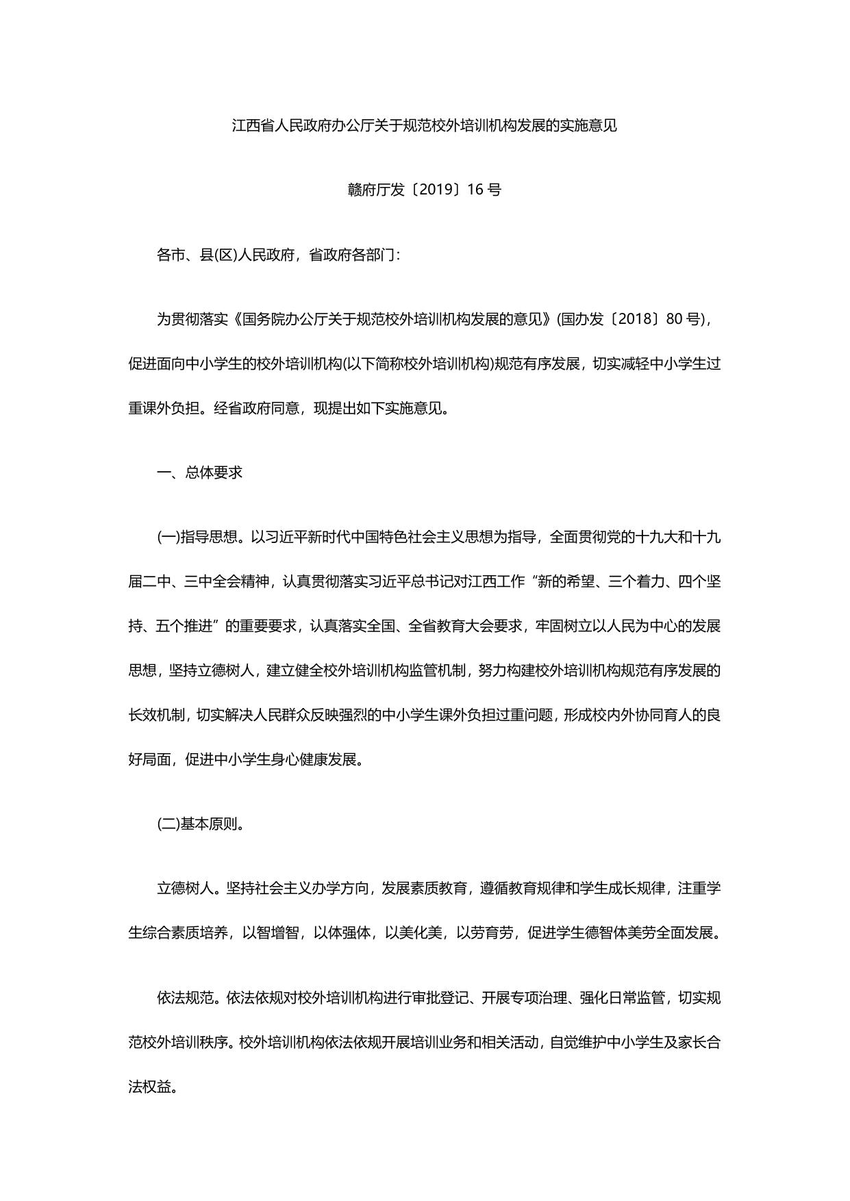 江西省人民政府办公厅关于规范校外培训机构发展的实施意见.pdf
