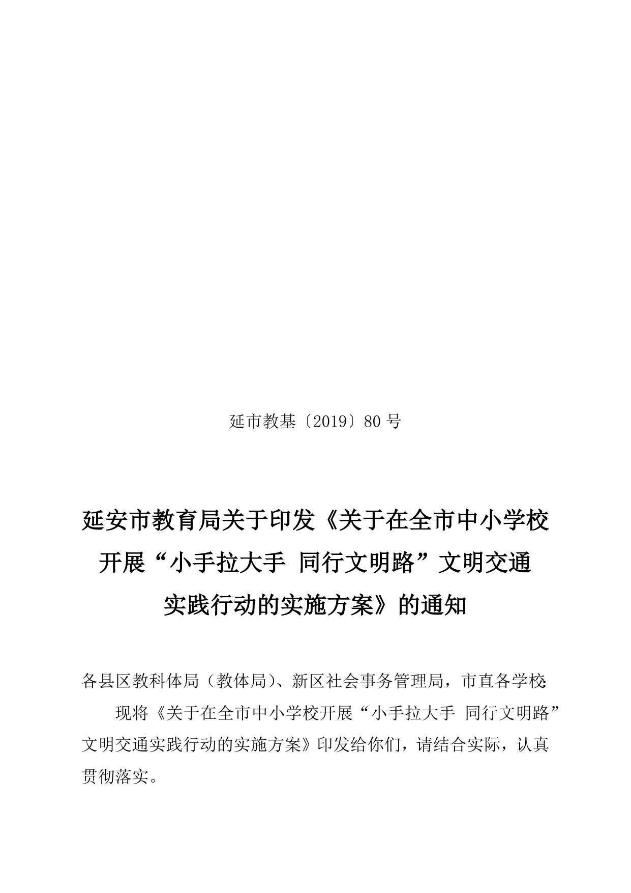 延安市教育局关于印发《关于在全市中小学校开展“小手拉大手 同行文明路”文明交通实践行动的实施方案》的通知.docx