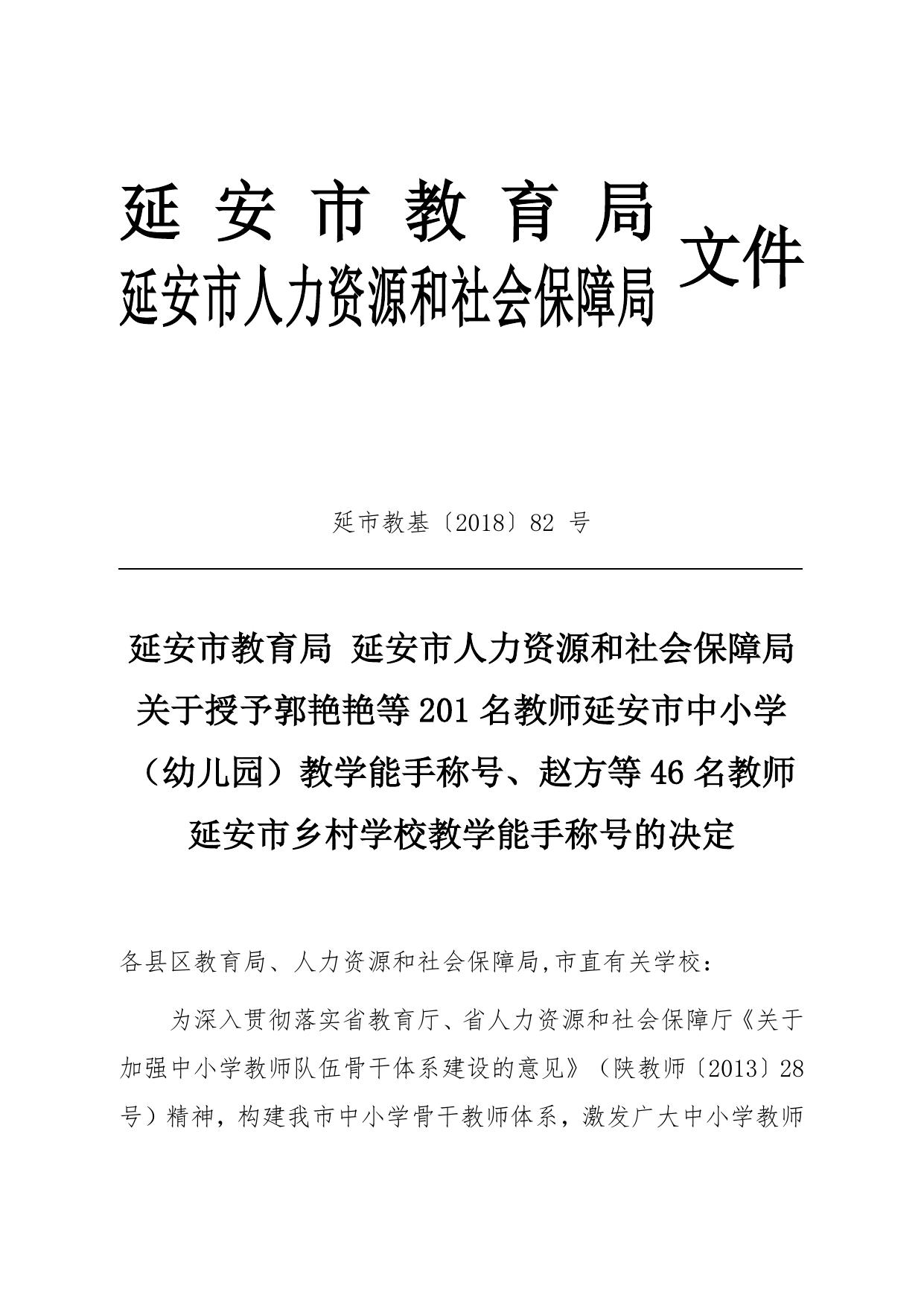 关于授予郭艳艳等201名教师延安市中小学 (幼儿园)教学能手称号、赵方等46名教师 延安市乡村学校教学能手称号的决定.docx