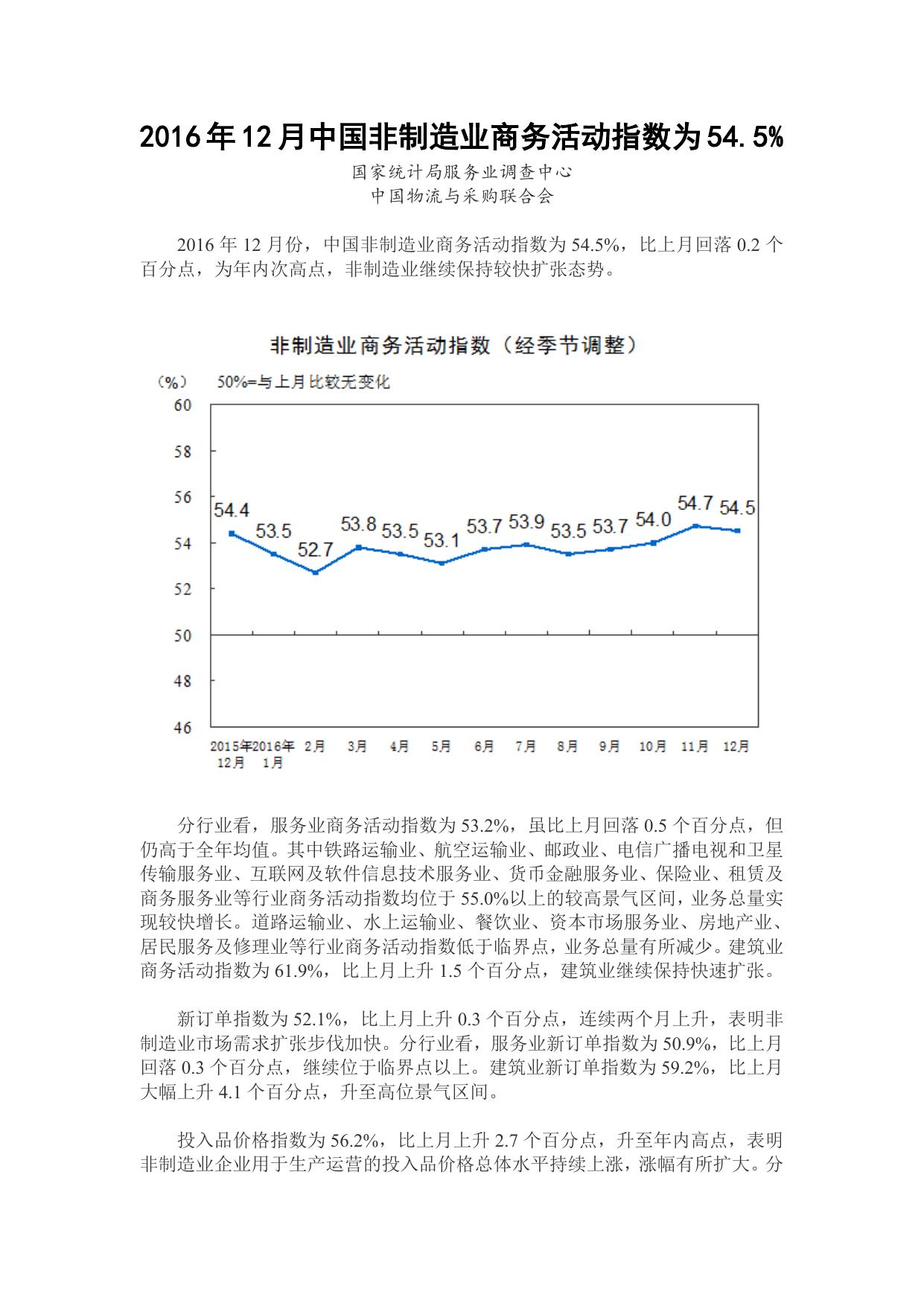 2016年12月中国非制造业商务活动指数为百分之54.5.doc