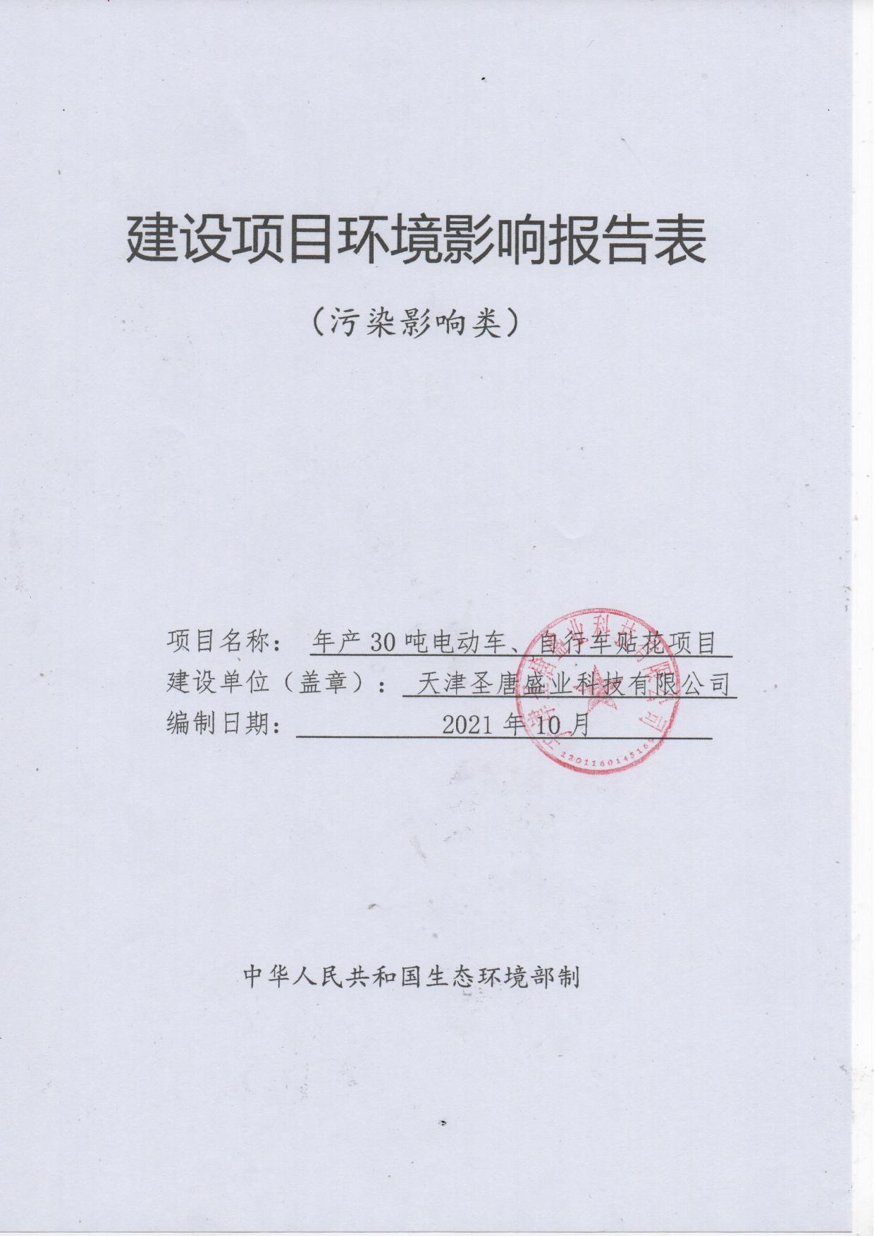 天津圣唐盛业科技有限公司年产30吨电动车、自行车贴花项目全本.pdf