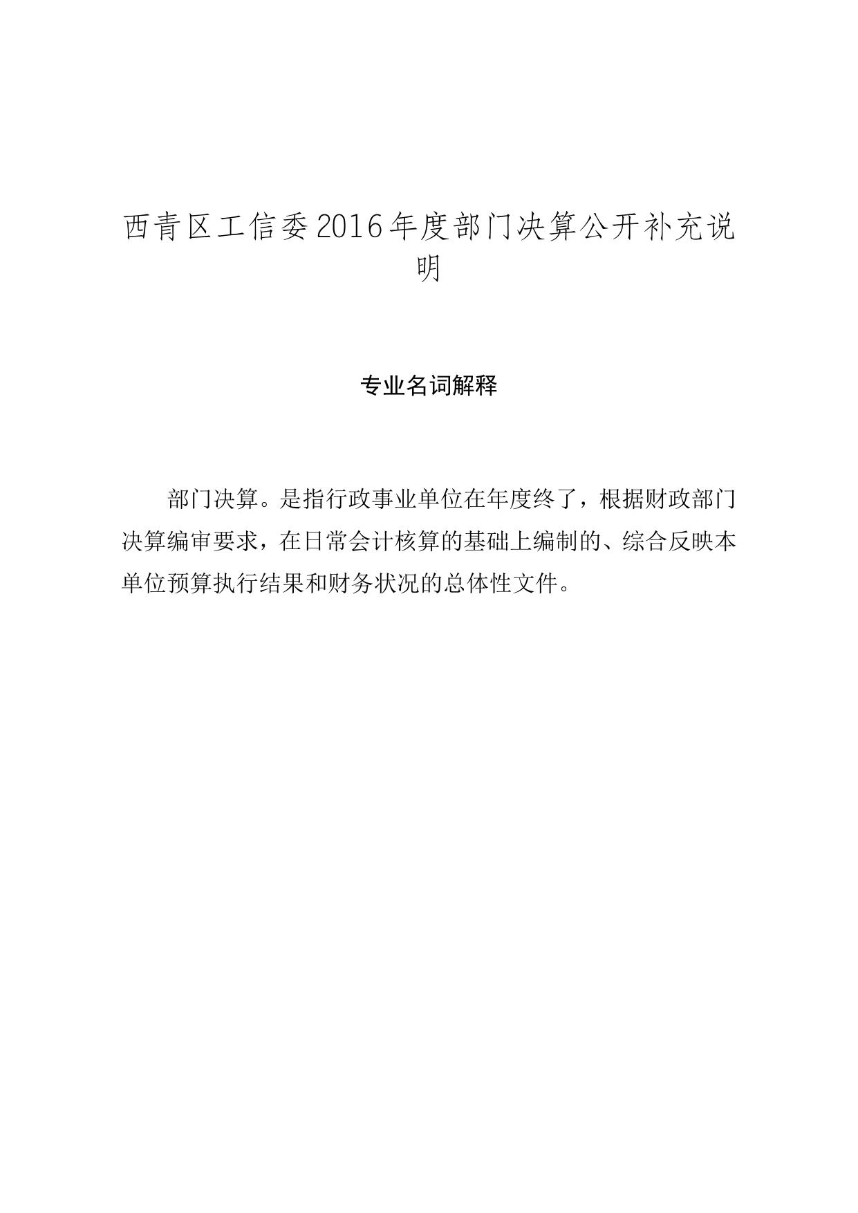 西青区工信委2016年度部门决算公开补充说明 - 2016年决算公开 - 天津市西青区人民政府.doc