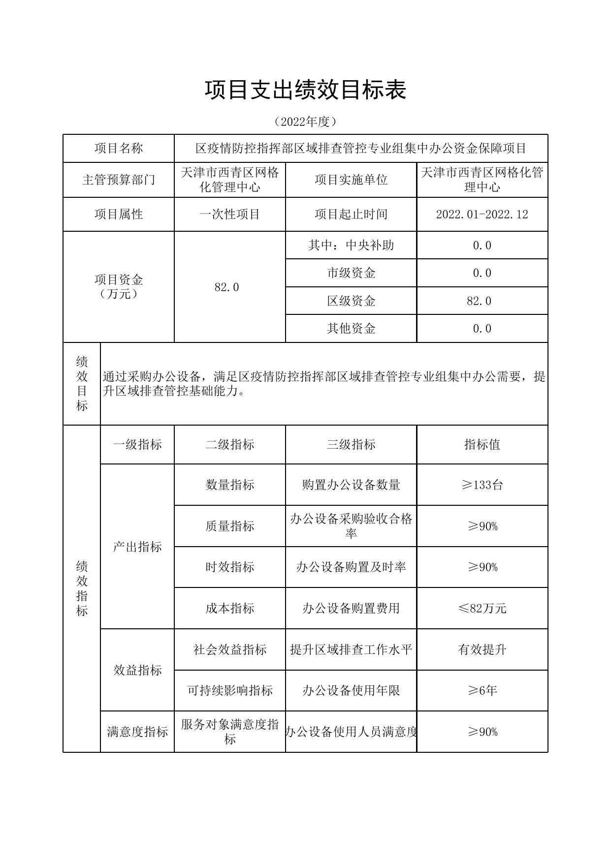附件1.区疫情防控指挥部区域排查管控专业组集中办公资金保障项目支出绩效目标表.xls