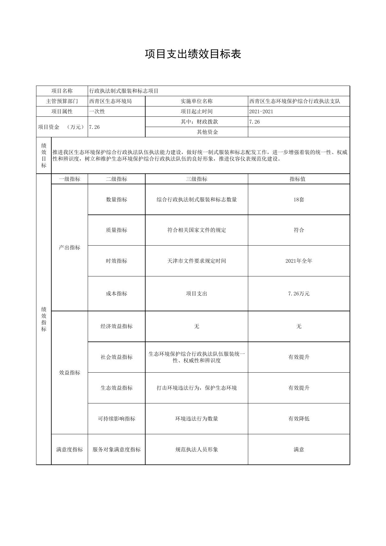 项目支出绩效目标表:行政执法制式服装和标志配发经费.XLS.xls