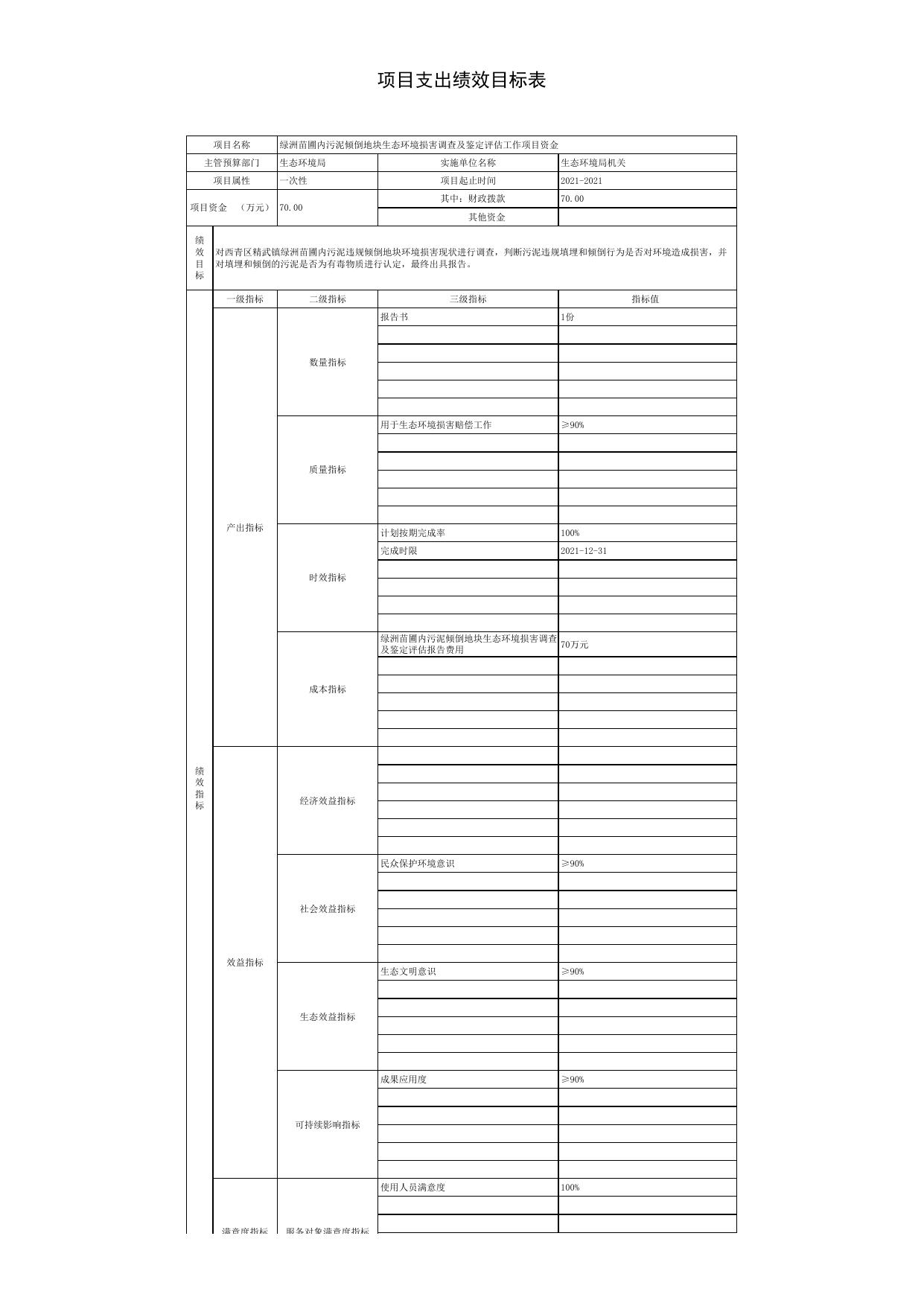 项目支出绩效目标表:绿洲苗圃内污泥倾倒地块生态环境损害调查及鉴定评估工作项目资金.XLS.xls