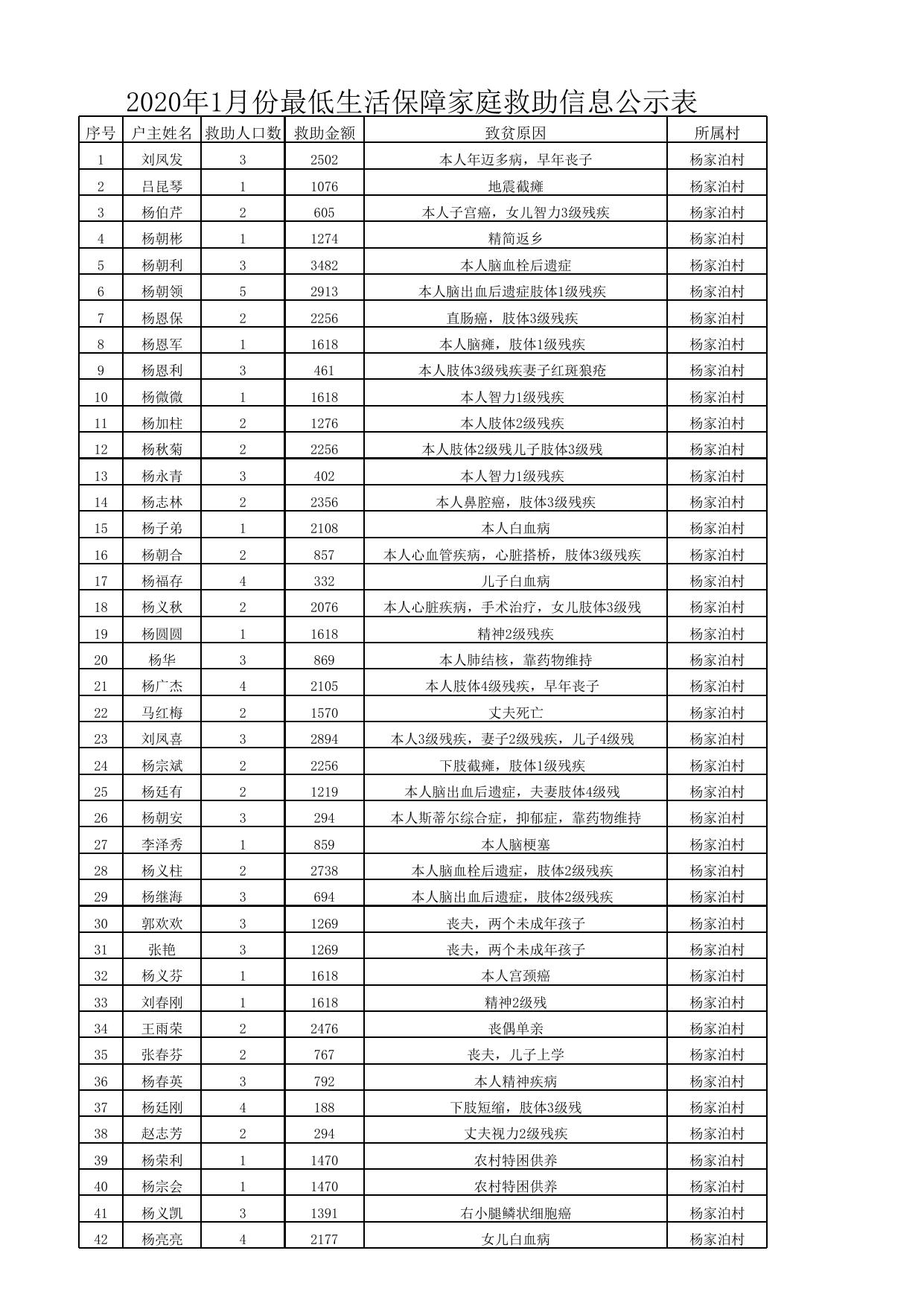 2020年1月份最低生活保障家庭救助信息公示表.xlsx