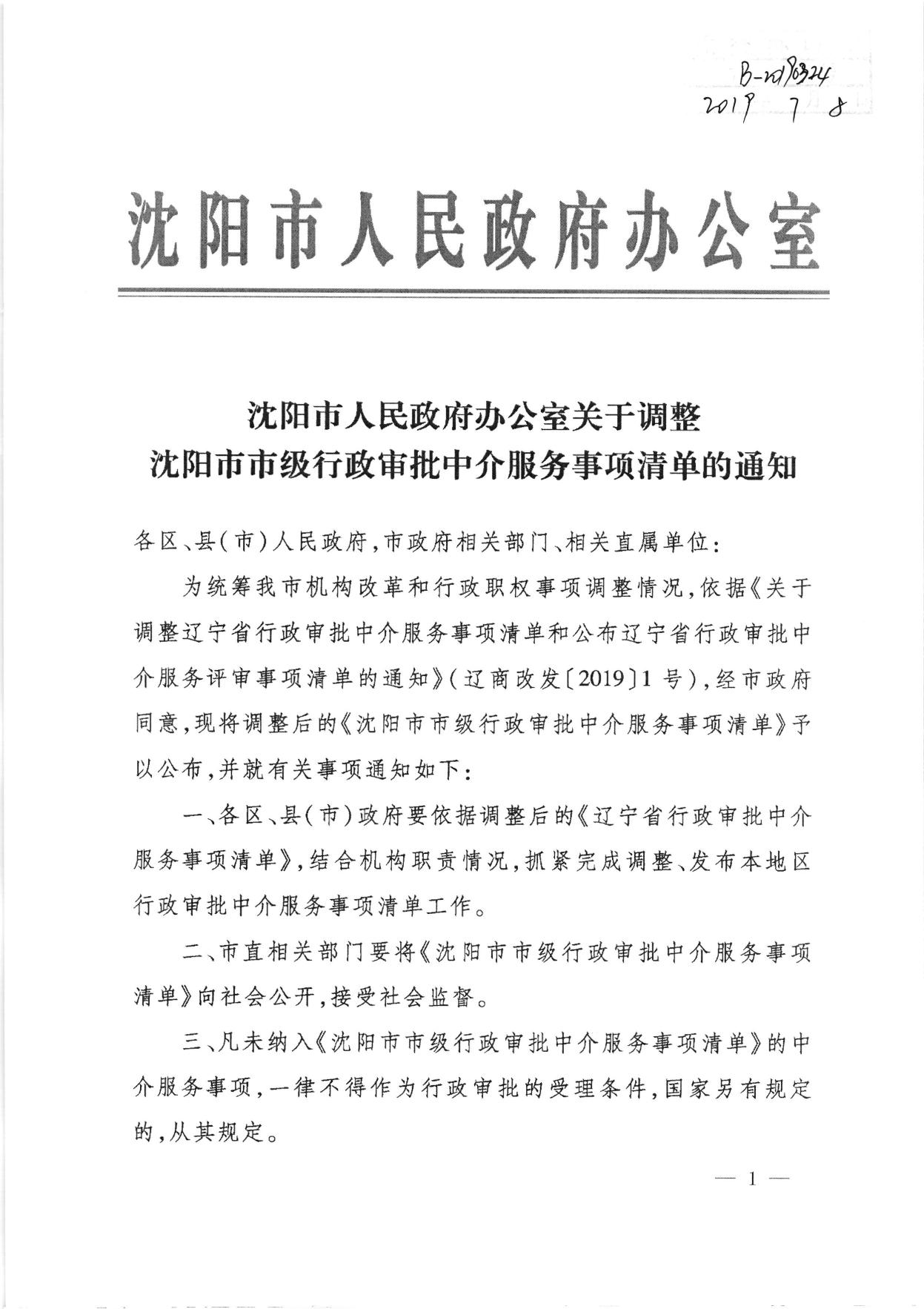 沈阳市人民政府办公室关于调整沈阳市市级行政审批中介服务事项清单的通知.pdf