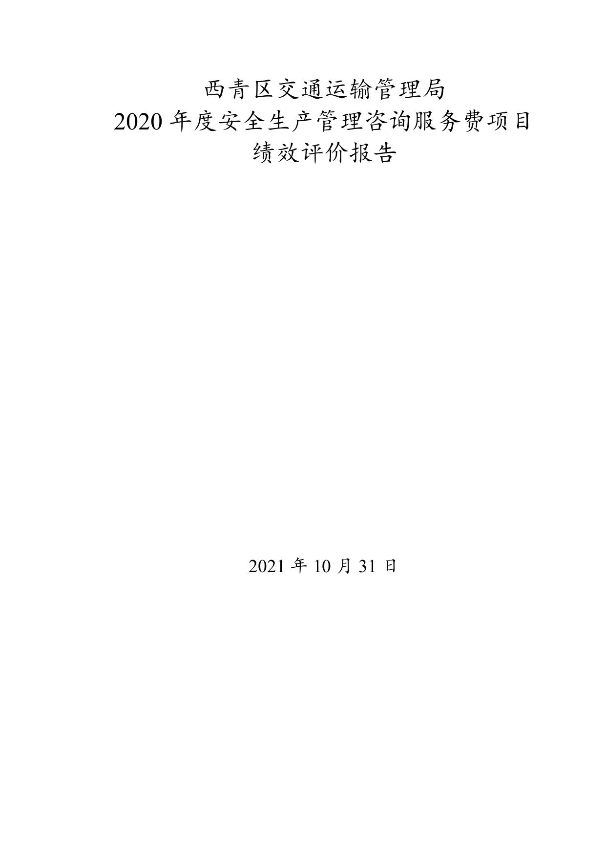 西青区交通运输管理局2020年度安全生产管理咨询服务费项目绩效评价报告.docx