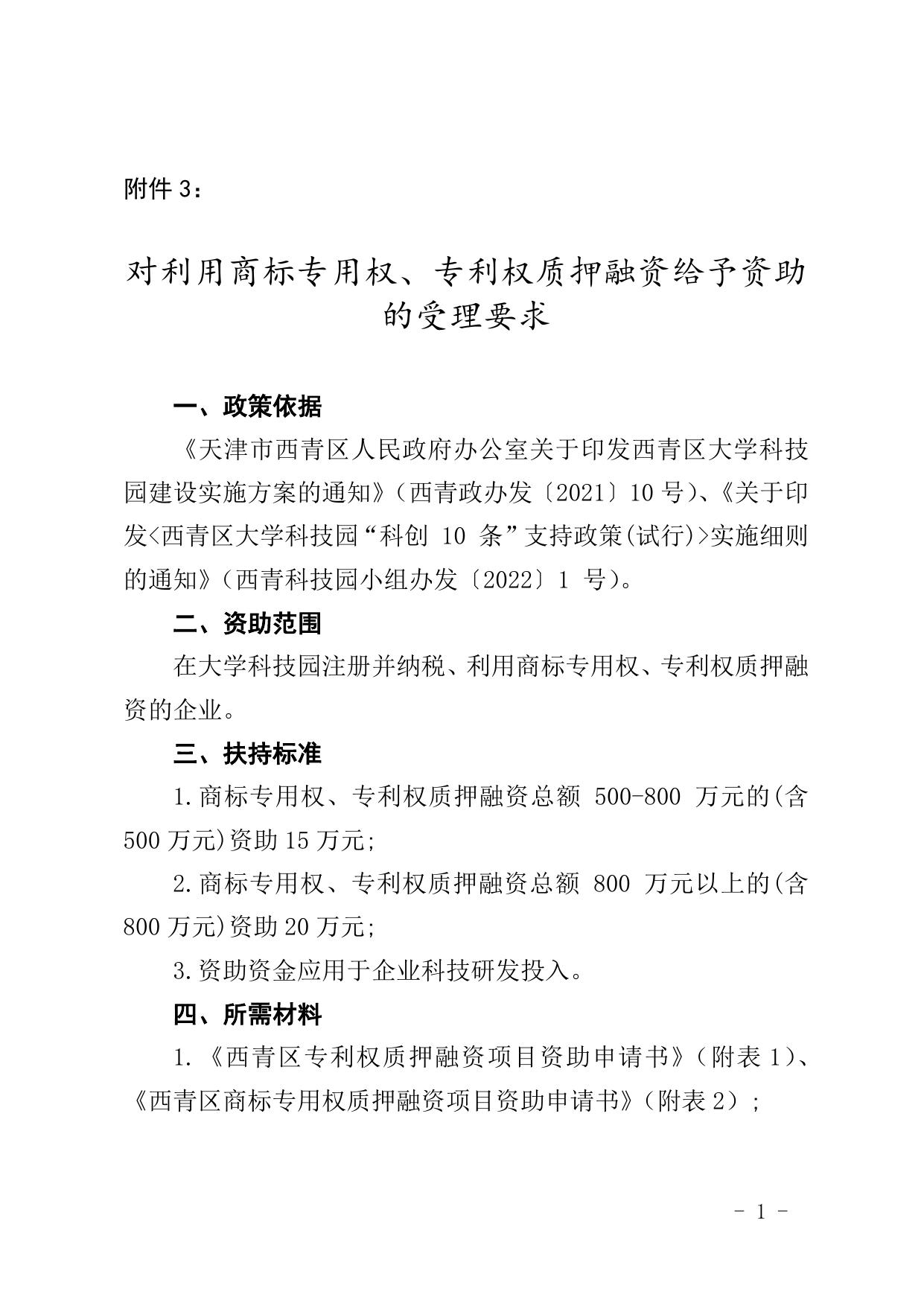 附件3:对利用商标专用权、专利权质押融资给予资助的受理要求.doc