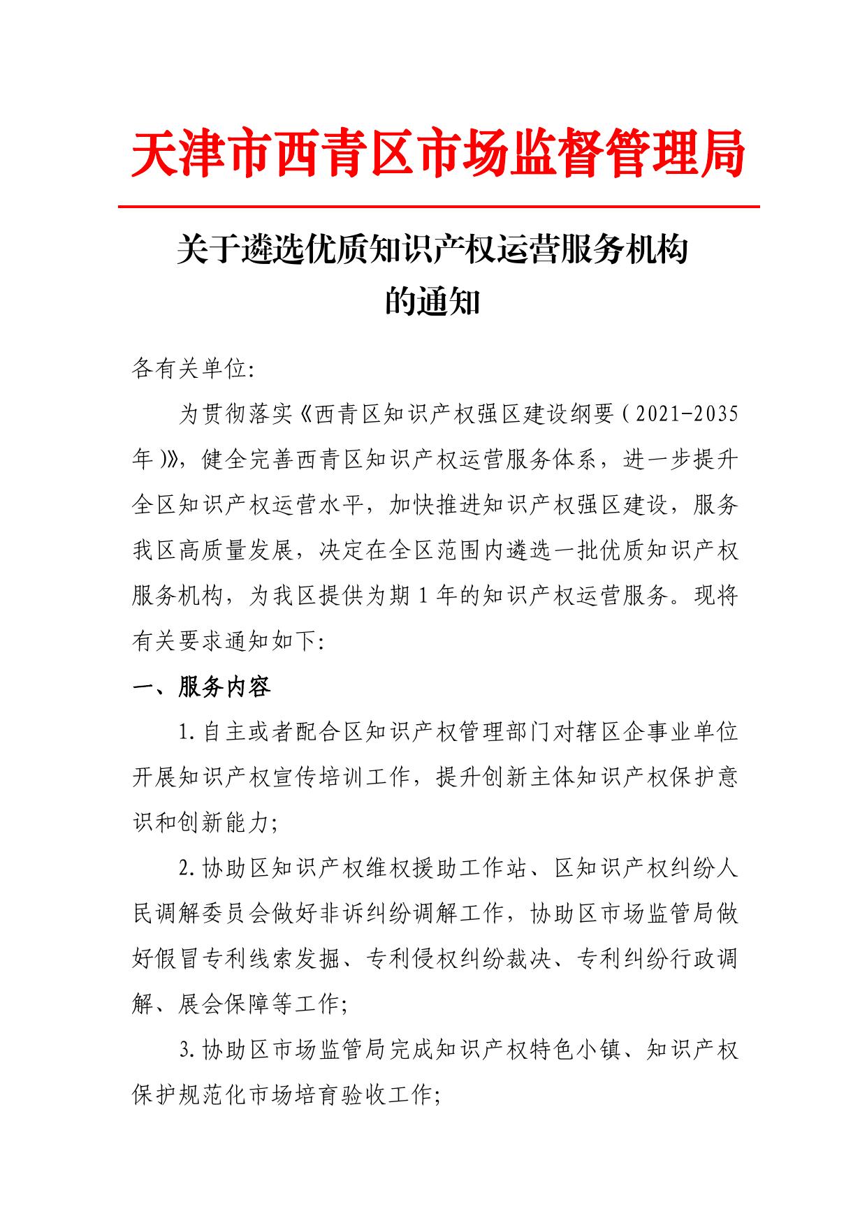 关于遴选优质知识产权运营服务机构的通知.pdf